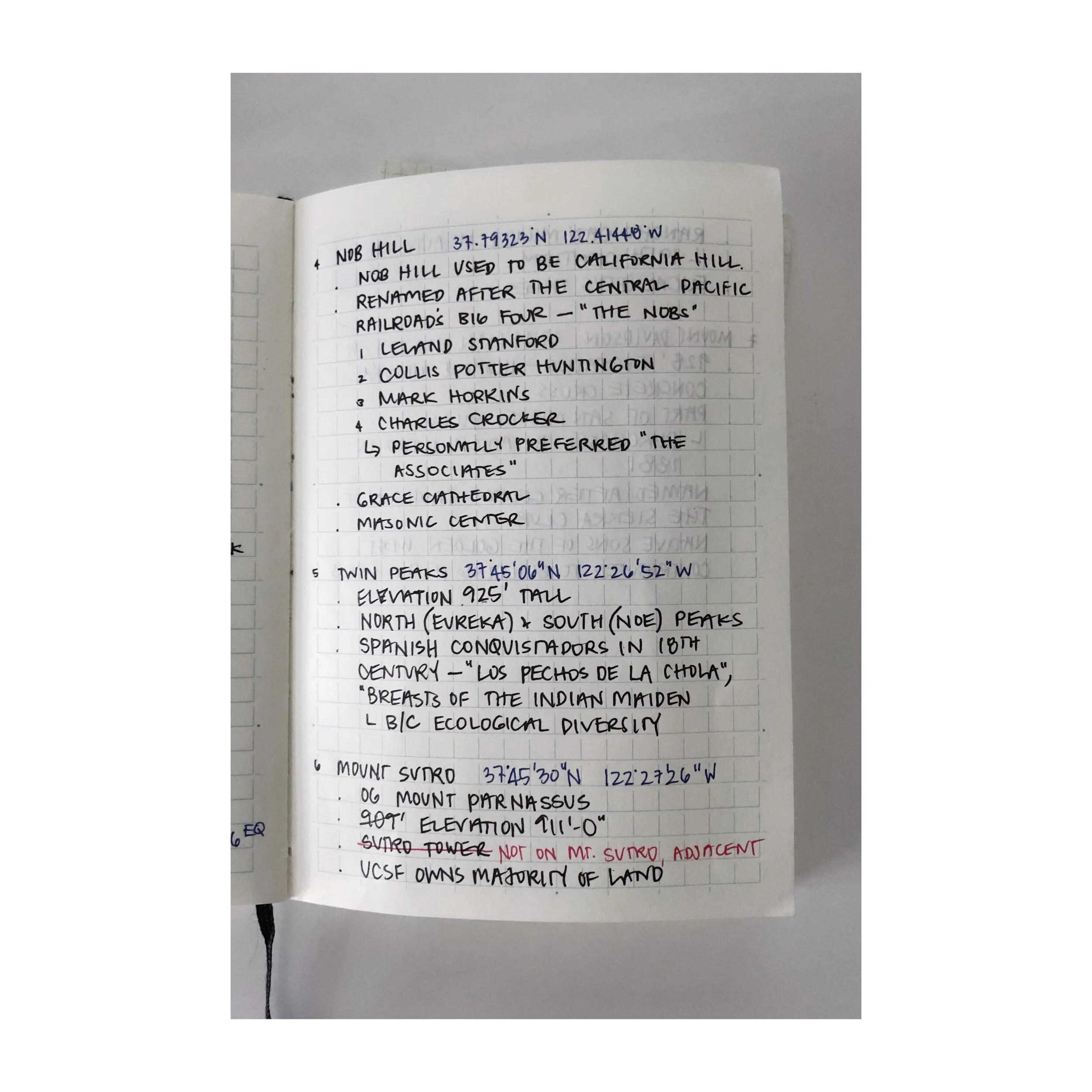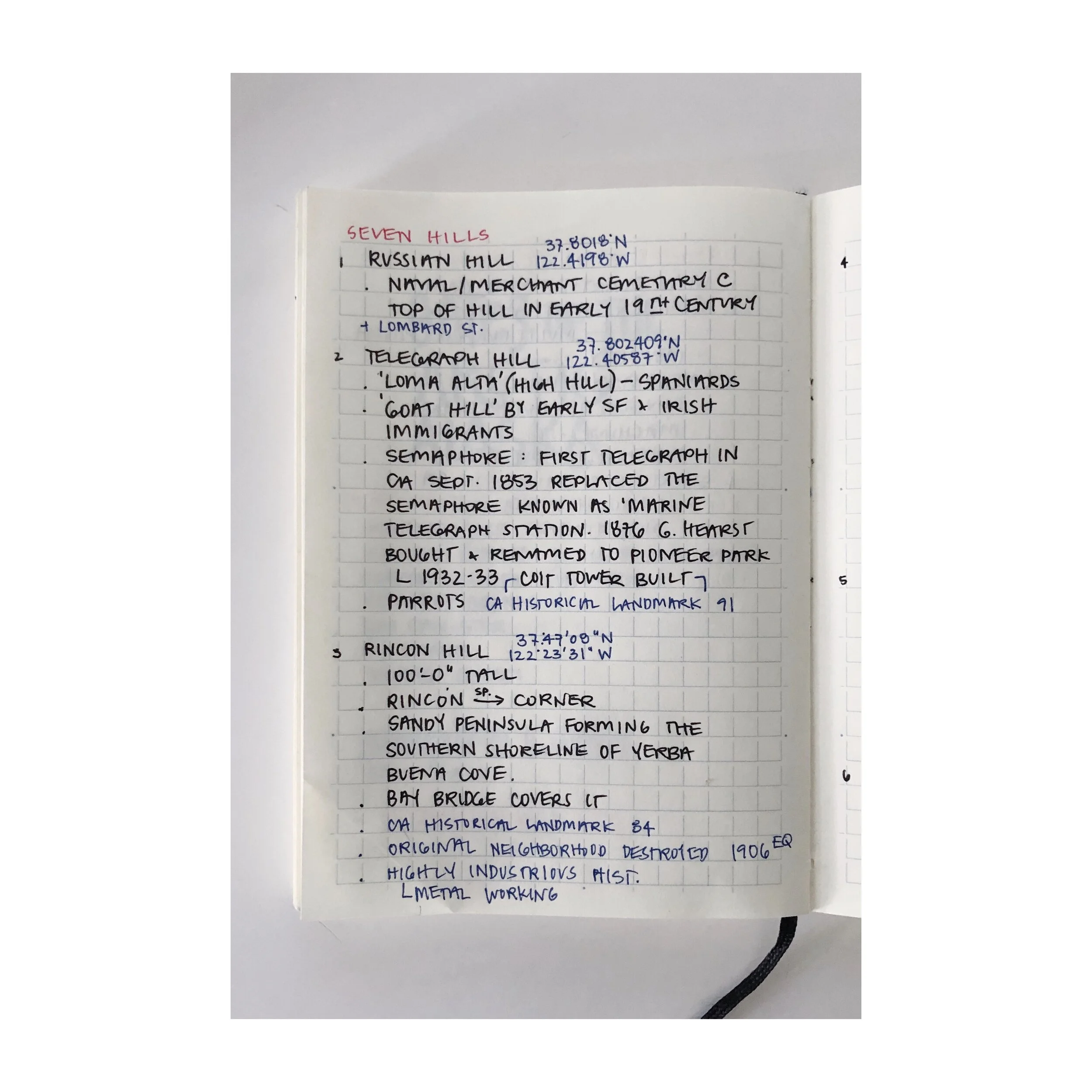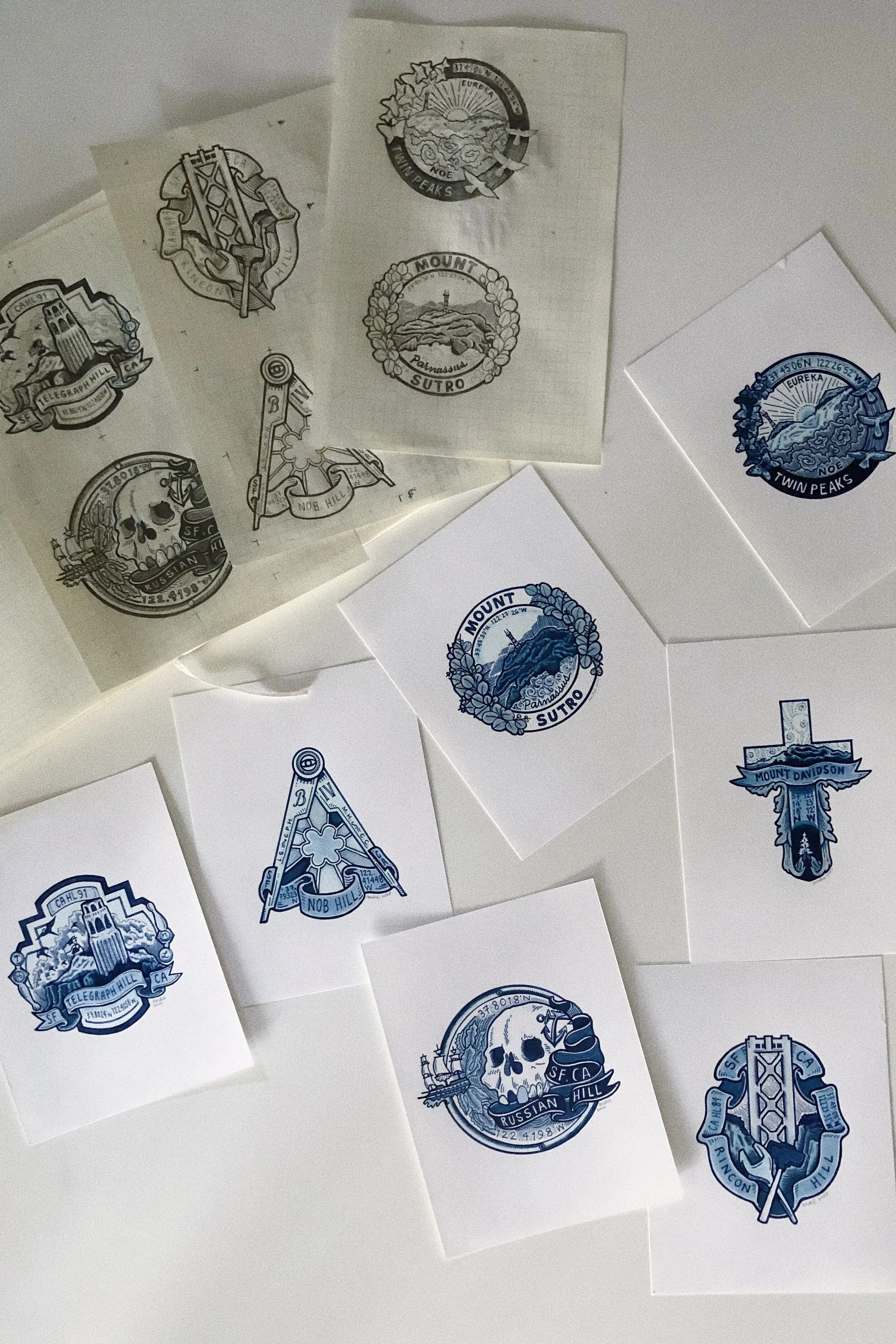 San Francisco was built on seven hills as history writes; Mount Davidson, Mount Sutro, Nob Hill, Rincon Hill, Russian Hill, Telegraph Hill and Twin Peaks. San Francisco’s vibrant history and famous hillside landscapes has always fascinated me. I incorporated bits and pieces of each hill’s namesake to explore each concept.